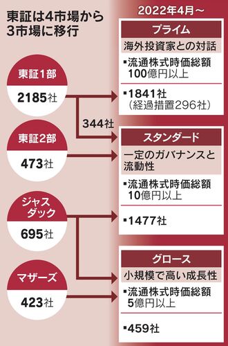 東証プライム、1841社が上場へ 4月に3市場へ移行https://t.co/0WWUEk0mFd— 日本経済新聞 電子版(日経電子版) (@nikkei) January 11, 2022