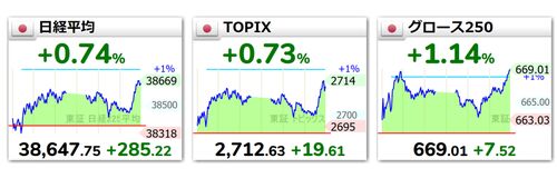 前日引け後に決算を発表したエヌビディアが6%超下落し、ナスダック総合の重しとなった一方、新規失業保険申請件数や4-6月期GDP改定値が強い結果となったことで景気後退(リセッション)懸念が一段と和らぎ、景気敏感株が上昇した。ダウ平均は243.63ドル高(…